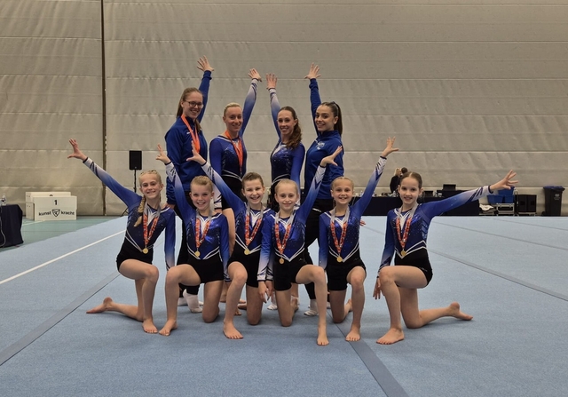 Het jongste wedstrijdteam mocht hun tweede plaatsingswedstrijd turnen in de middenbouw niveau 5. Omdat ze vorige week al hadden kunnen ervaren hoe een echte turnwedstrijd gaat, waren de zenuwen dit keer iets minder aanwezig. Op brug turnde Nena de kip en buikdraai aan elkaar door en bij Anne en Summer lukte dit keer het afspreiden. Op balk was het team nu veel stabieler, wat zorgde voor de hoogste score van alle teams op dit toestel. Daarbij waren de netste oefeningen van het hele veld van Anne en Tess, heel knap als eerstejaars pupil. Op vloer turnde Liz wederom heel netjes en lukte bij Lieve weer de arabier flikflak. Na nog wat nette sprongen over de pegases eindigde het team met ruim 6 punten meer dan de vorige wedstrijd dan ook op een mooie 2e plaats.