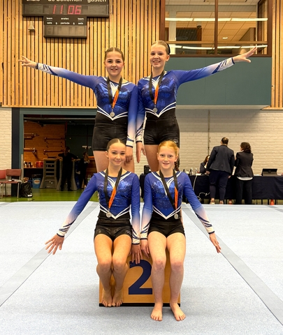 Zelfs op het toestel balk wisten ze hun zenuwen in bedwang te houden en wisten Iris, Guusje en Noor zelfs hun oefening uit te turnen zonder val en weinig wiebels. Ze kregen dan ook hoge cijfers en legden daarmee een solide basis voor een hoge eindklassering. Maud blonk wederom uit op vloer met een mooie sierlijke oefening. Op het toestel brug wisten ze ook alle vier een hogere score te behalen dan vorige week, met een uitschieter voor Iris die zelfs het twee-na-hoogste cijfer behaalde van alle deelnemers. Na vier toestellen bleek dat de meisjes heel verdiend het zilver mee naar huis mochten nemen. Als kers op de taart wisten Iris en Noor individueel heel knap respectievelijk 2e en 3e te worden waarmee ze nog een kans maken op kwalificatie voor de individuele meerkampfinale later dit seizoen.